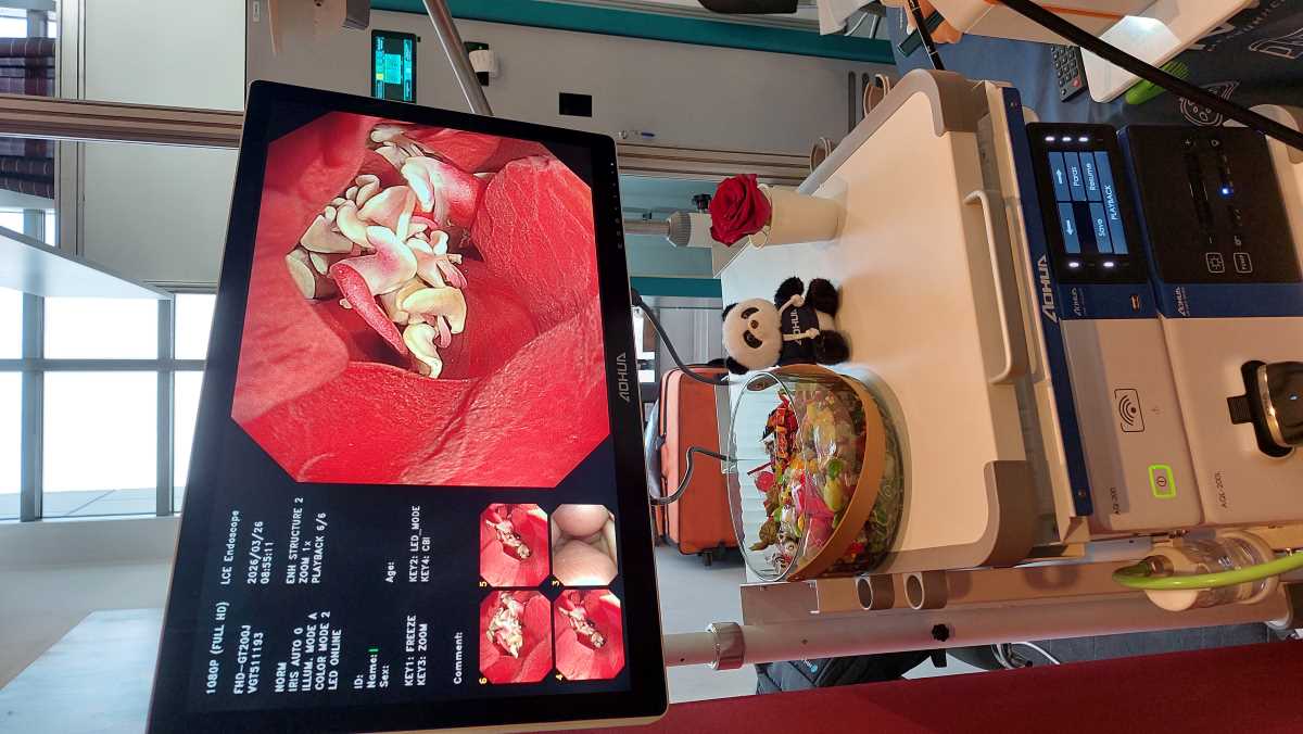 На стенде была представлена видеоэндоскопическая стойка Aohua AQ-200, позволяющая специалистам оценить качество изображения, эргономику и функциональные возможности оборудования.