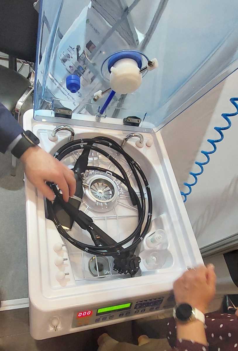 Также участники могли проверить вместимость эндоскопов в машину для мойки и дезинфекции гибких эндоскопов J-Meditech J-1000, что позволило наглядно оценить удобство эксплуатации и возможности оборудования.