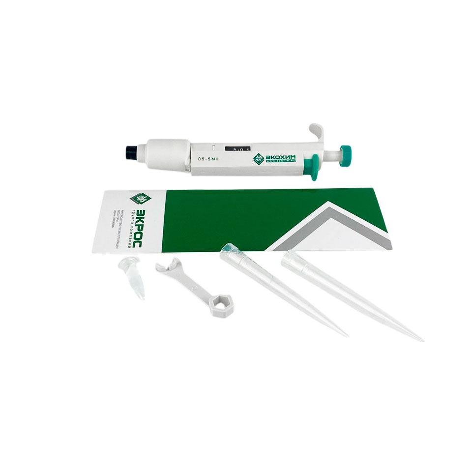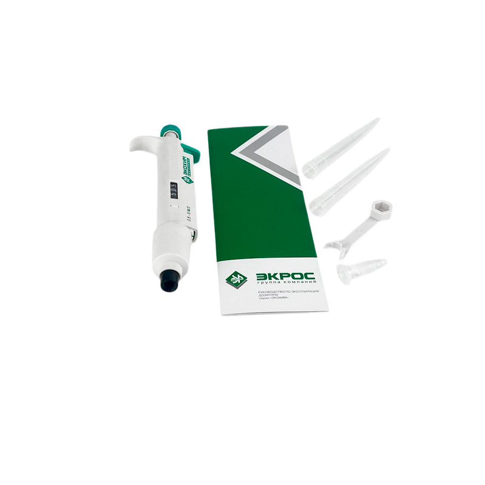 - Одноканальный механический дозатор переменного объёма 500 – 5 000 мкл.