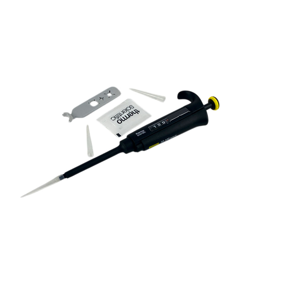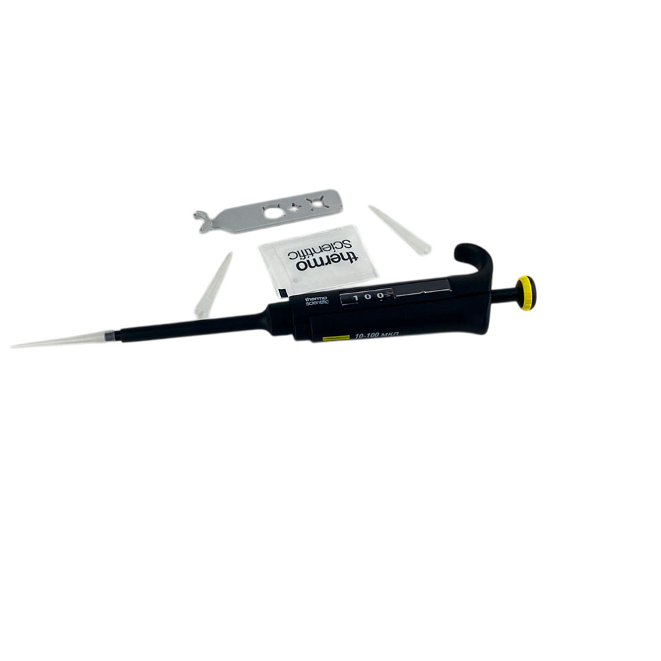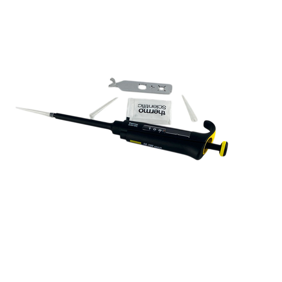 - Одноканальный дозатор с переменным объёмом дозирования от 10 до 100 мкл.