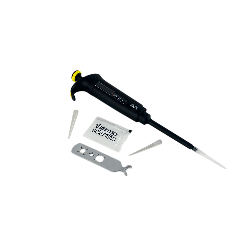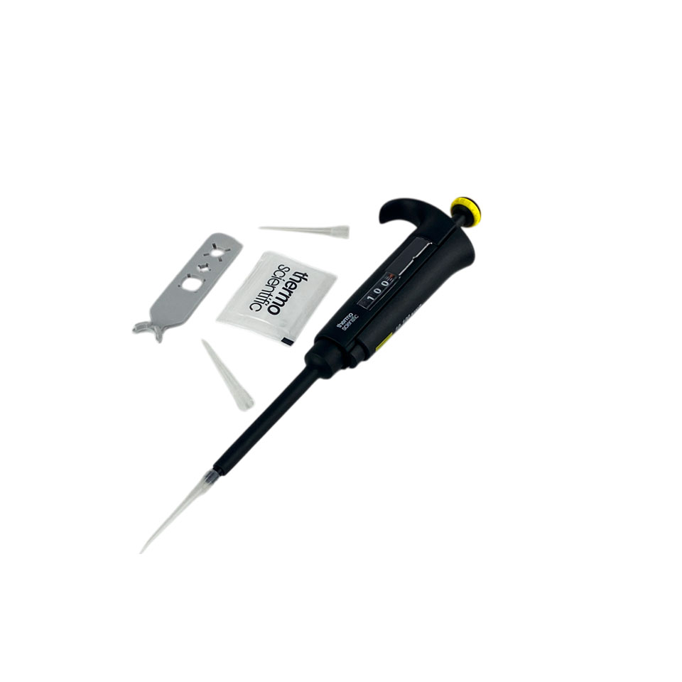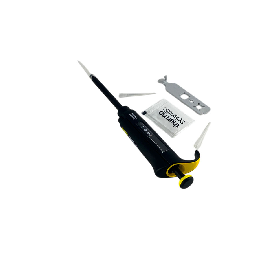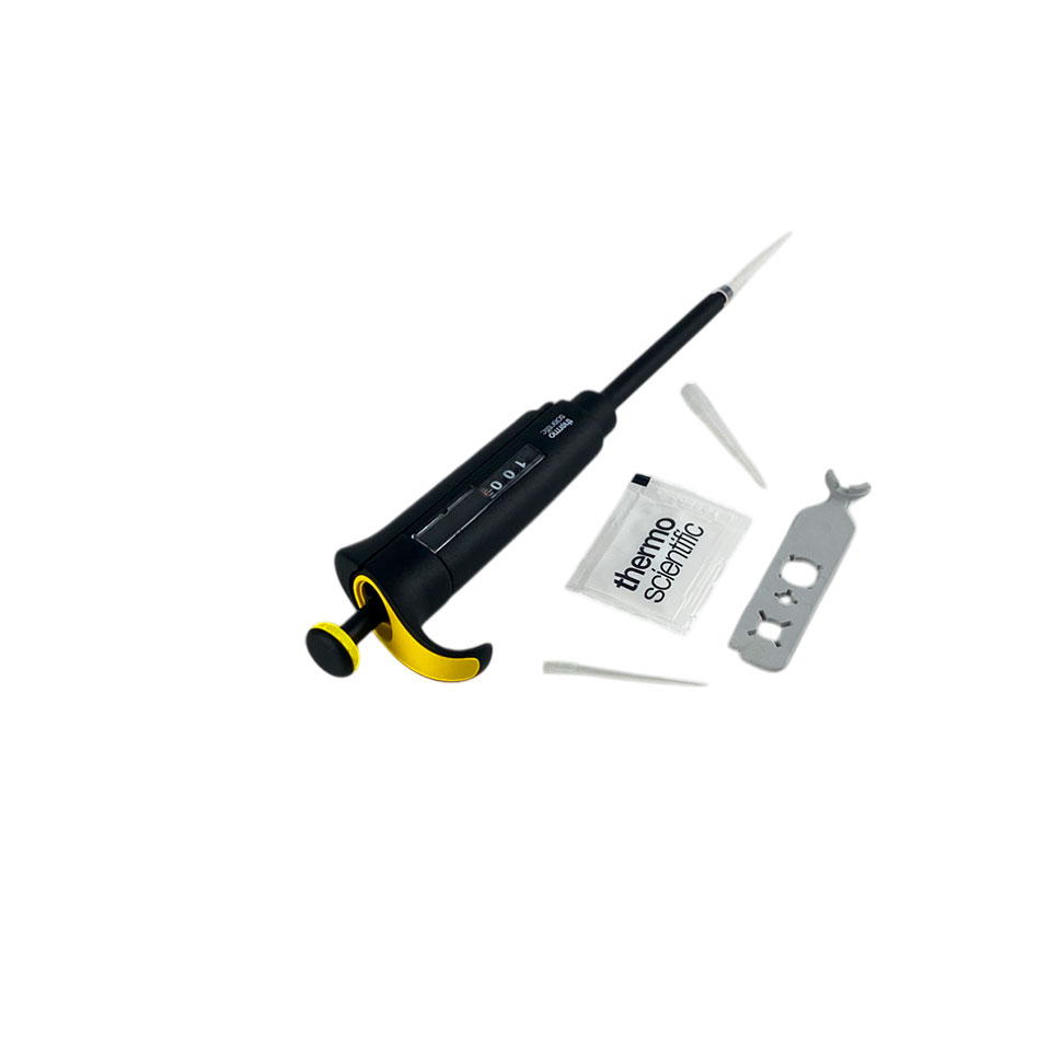 - Одноканальный дозатор с переменным объёмом дозирования от 10 до 100 мкл.