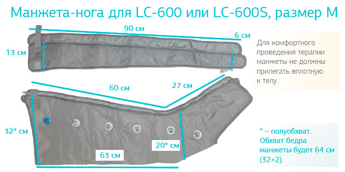Применение манжеты-ноги для LC-600 или LC-600S, размер M