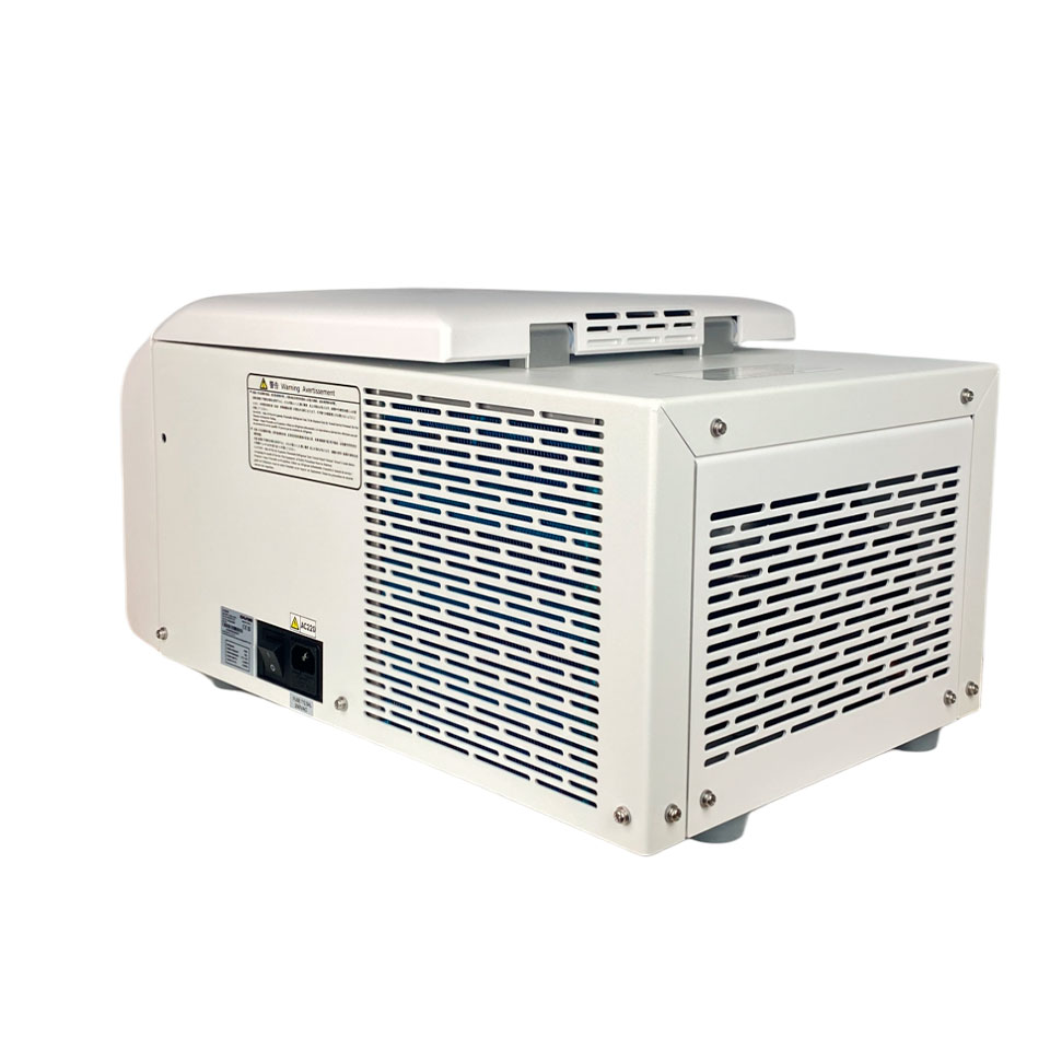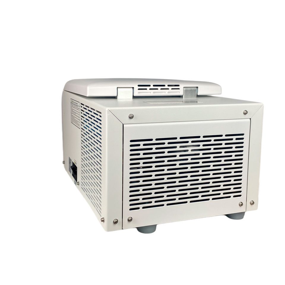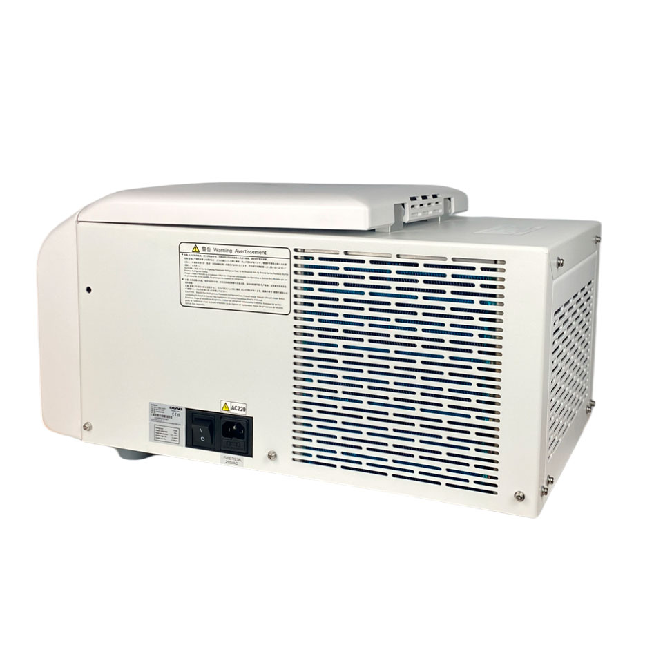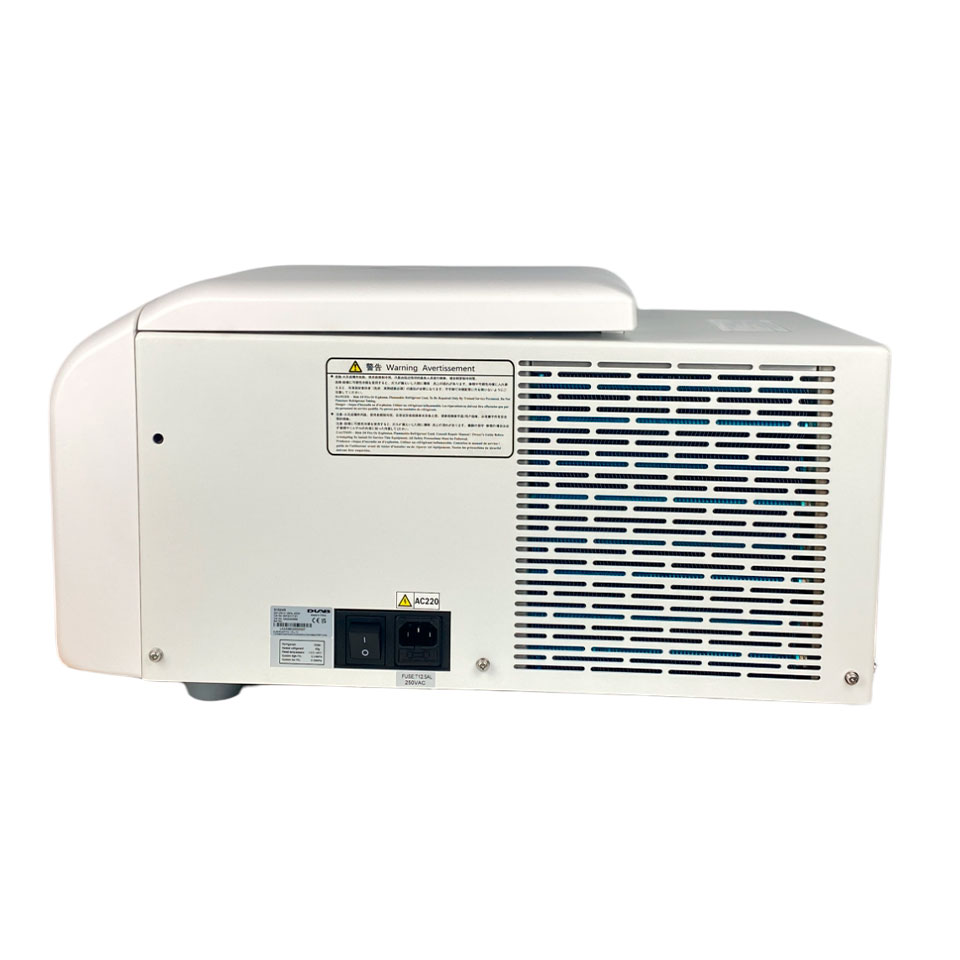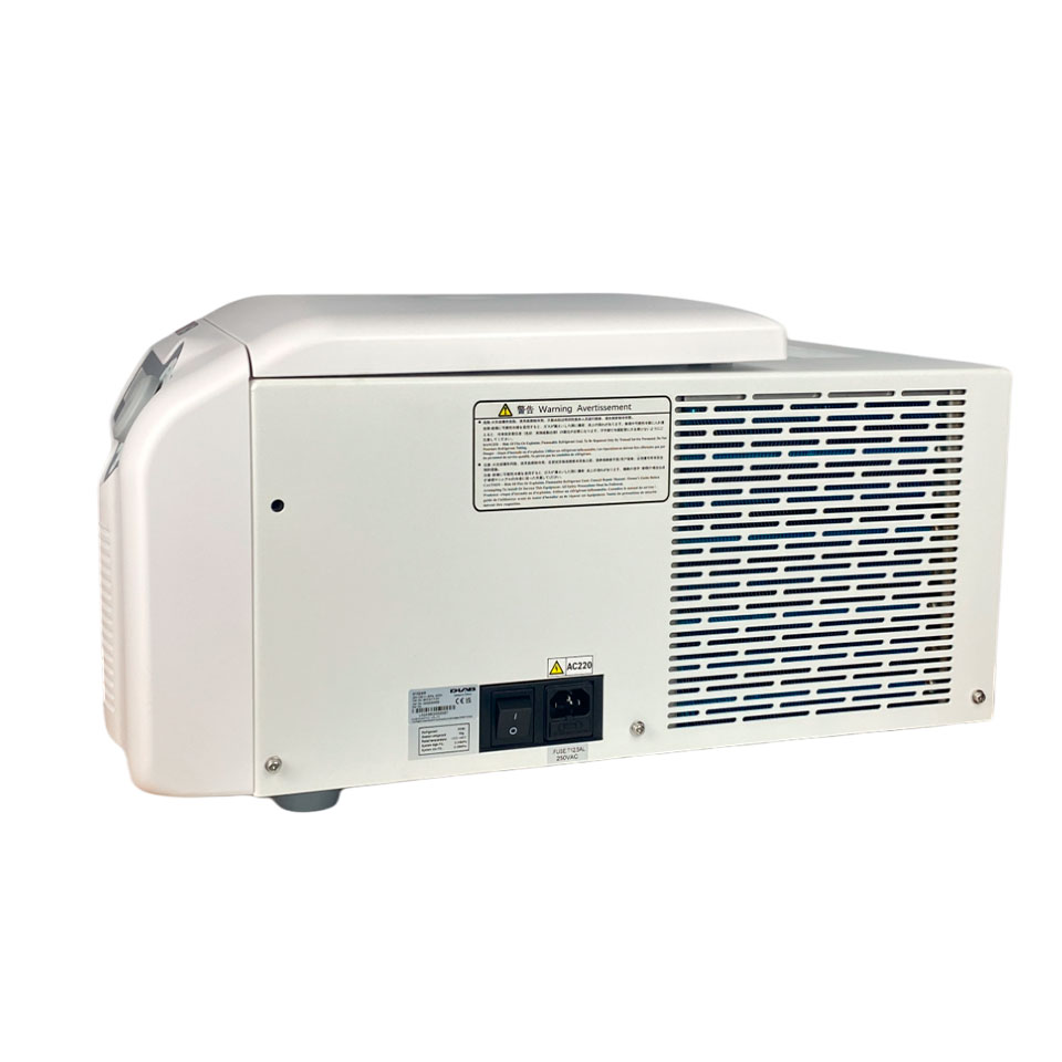 Устройство оснащено цифровым LCD-дисплеем с индикацией результатов и настроек, удобной системой управления со звуковыми оповещениями и электронным замком крышки камеры. Компрессор автоматически обеспечивает охлаждение при температуре ниже температуры окружающей среды. Центрифуга позволяет мониторить состояние баланса ротора и включает 9 программ центрифугирования с регулируемым ускорением и торможением. Внешний резервуар для конденсата предотвращает его образование внутри камеры.