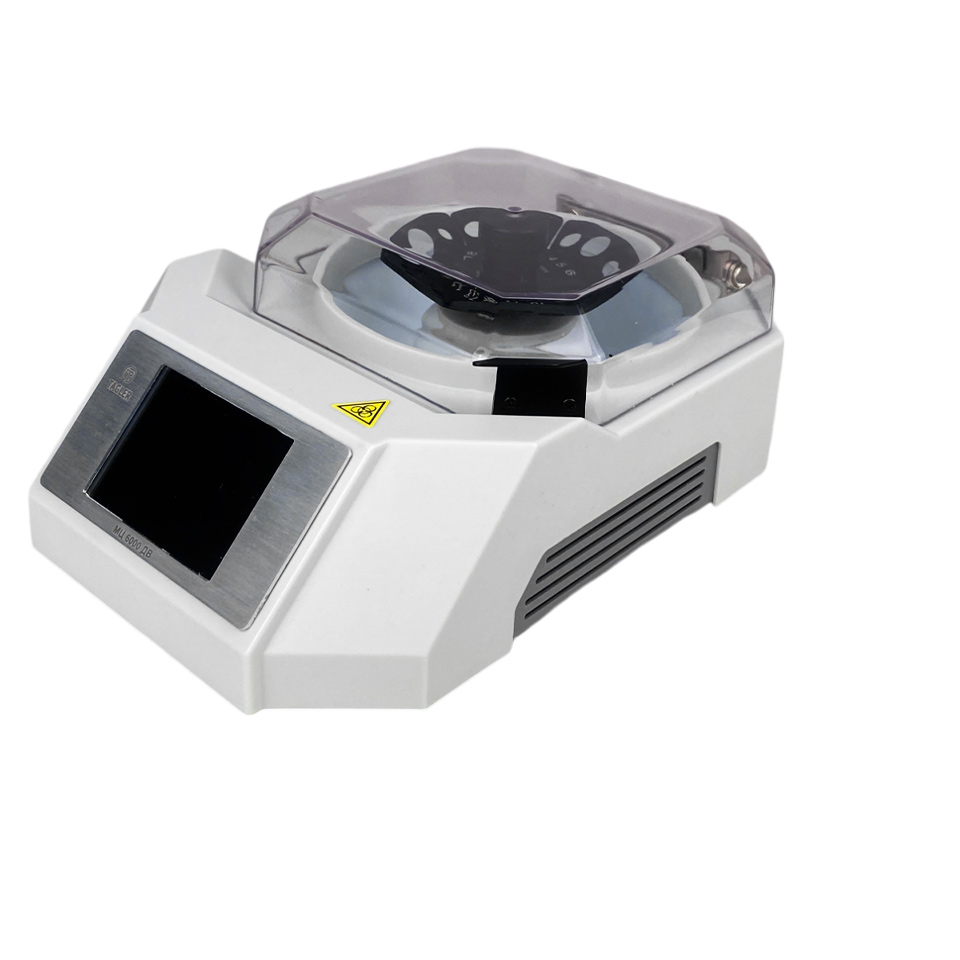 Центрифуга оснащена сенсорным дисплеем и поддерживает программирование скорости центрифугирования, скорости встряхивания, времени работы и количества циклов. Диапазон регулировки скорости составляет от 300 до 6000 об/мин с шагом 50 об/мин, что обеспечивает точную настройку параметров для различных лабораторных задач.