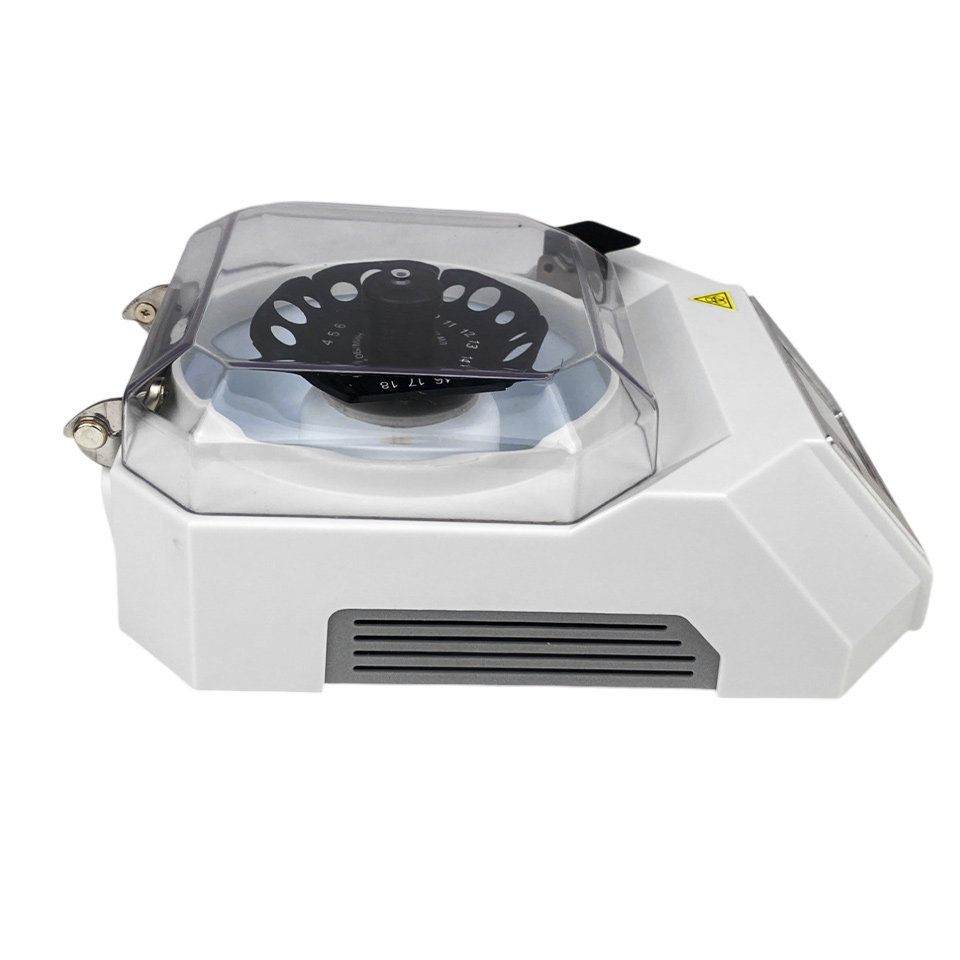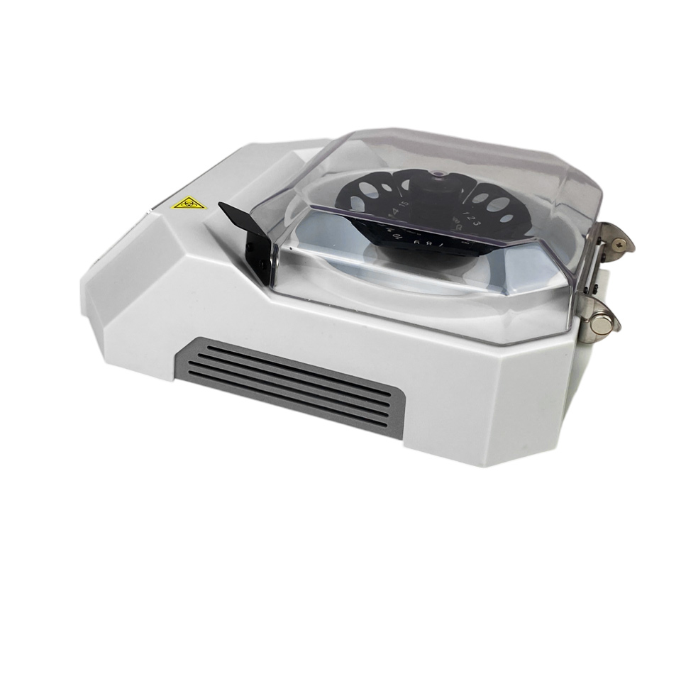 Механизм центрифуги защищён от случайного попадания жидкостей. При проливе образца внутри камеры защитный колпак можно снять и очистить внутреннюю чашу прибора.