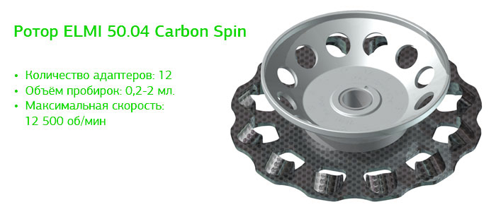 Центрифуга−встряхиватель ELMI CM−50MP комплектуется инновационным ротором Carbon−Spin с магнитной крышкой, состоящим из алюминиевого основания, карбоновой пластины и аэродинамической крышки. Конструкция ротора обеспечивает надёжную фиксацию пробирок, устойчивость при высоких скоростях и эффективное перемешивание, включая тяжёлые частицы. В режиме вортекса пробирки получают дополнительный импульс при взаимодействии с карбоновым диффузором, что повышает эффективность смешивания образцов. Специальная конструкция крышки позволяет осаждать образцы в пробирках с открытыми крышечками.