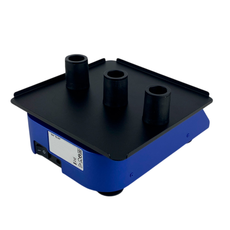 - Рабочая платформа 168 × 168 мм позволяет размещать несколько пробирок или колб одновременно.