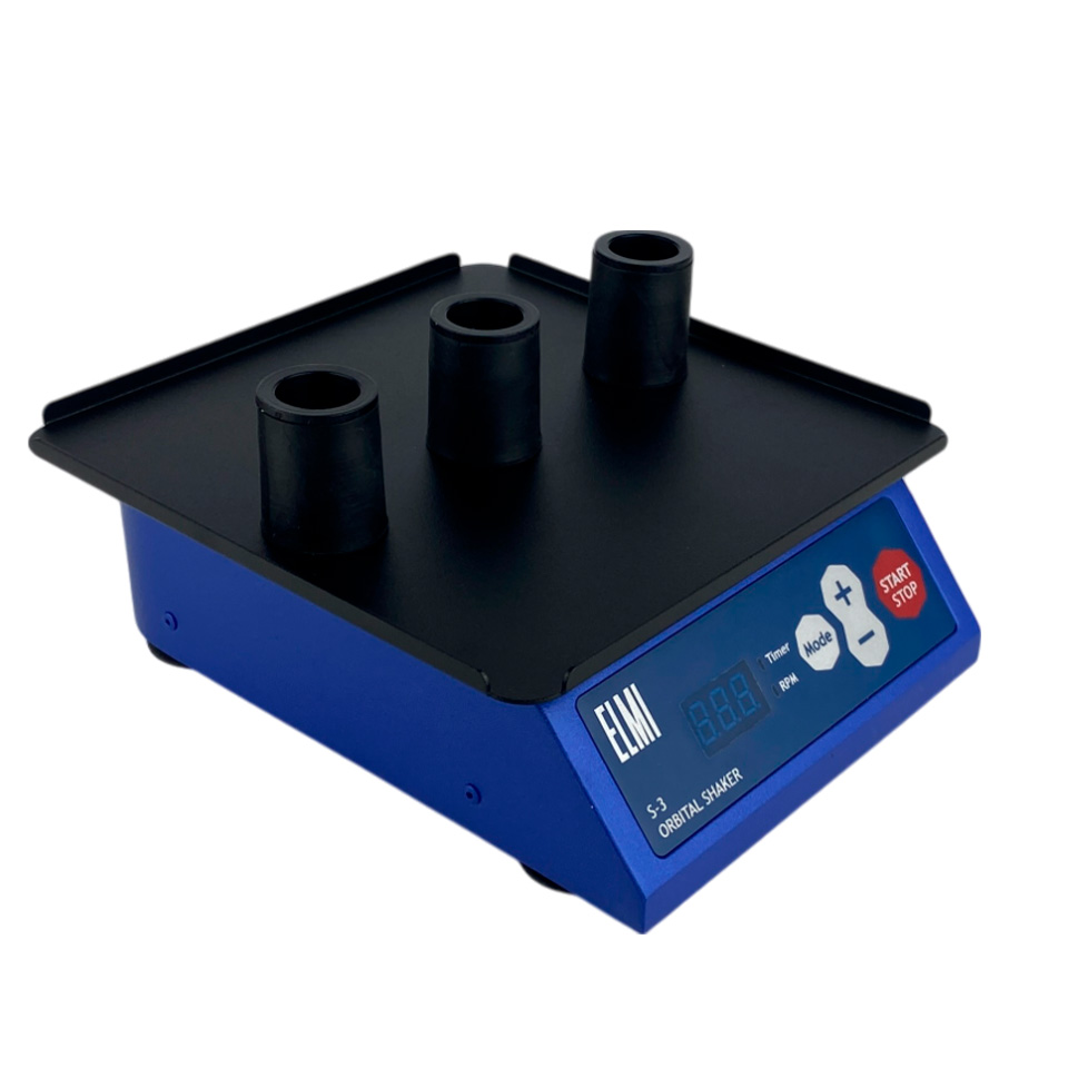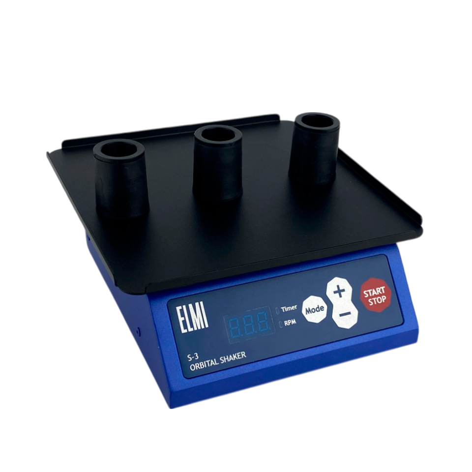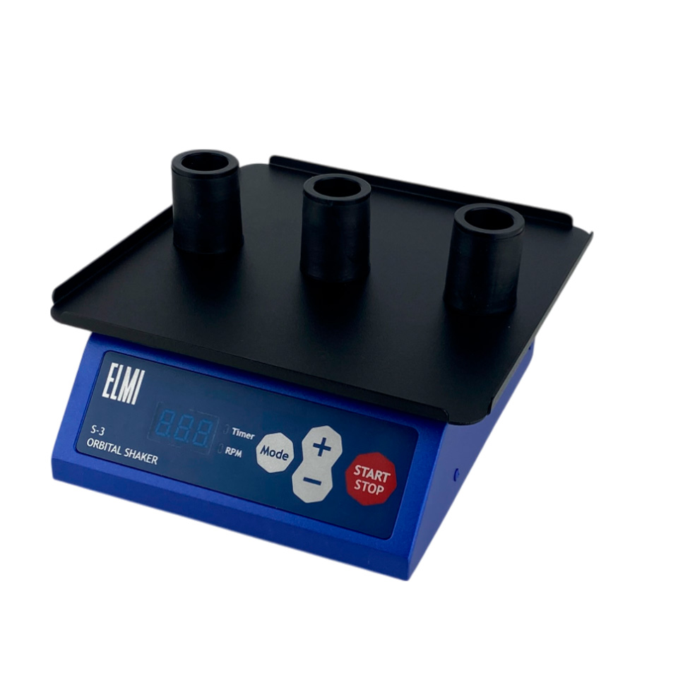 Медицинский орбитальный шейкер ELMI S−3 — прибор для перемешивания и взбалтывания биологических жидкостей и растворов в пробирках и лабораторной посуде с плоским дном, включая колбы, подставки с пробирками, чашки Петри и другую лабораторную посуду. Используется в микробиологии, вирусологии, биохимии и биологии.