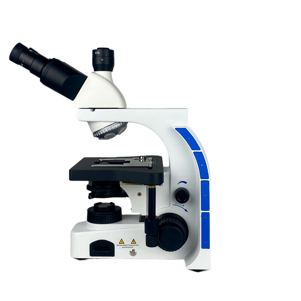 Устройство оснащено системой грубой и точной фокусировки с защитным механизмом, предотвращающим столкновение предметного столика с линзой. Подсветка по Келлеру выполнена на LED, регулируется плавно для удобства работы, а центрированный конденсор имеет держатель светофильтров и ирисовую диафрагму. Тринокулярная насадка позволяет визуальное наблюдение с поворотом на 360 градусов, а револьвер рассчитан на 5 объективов.