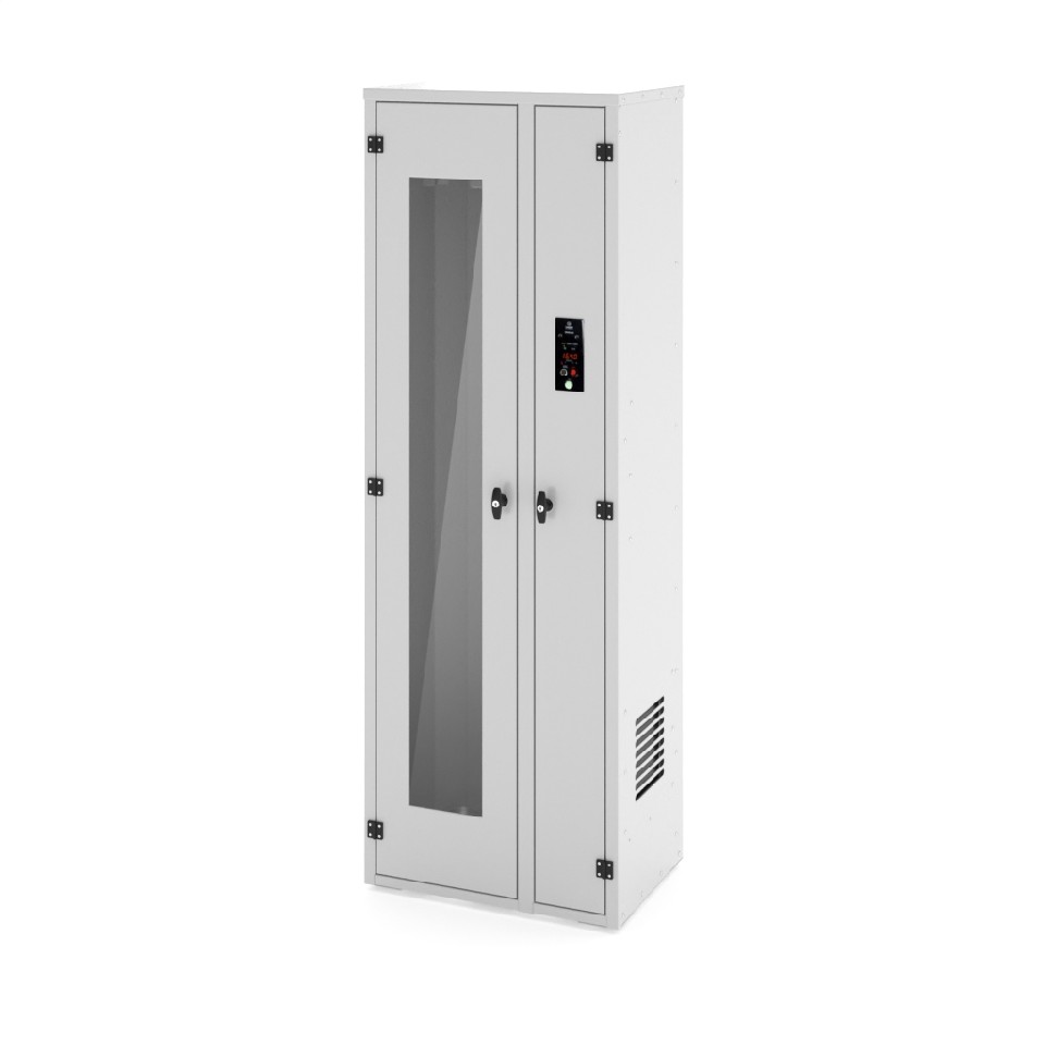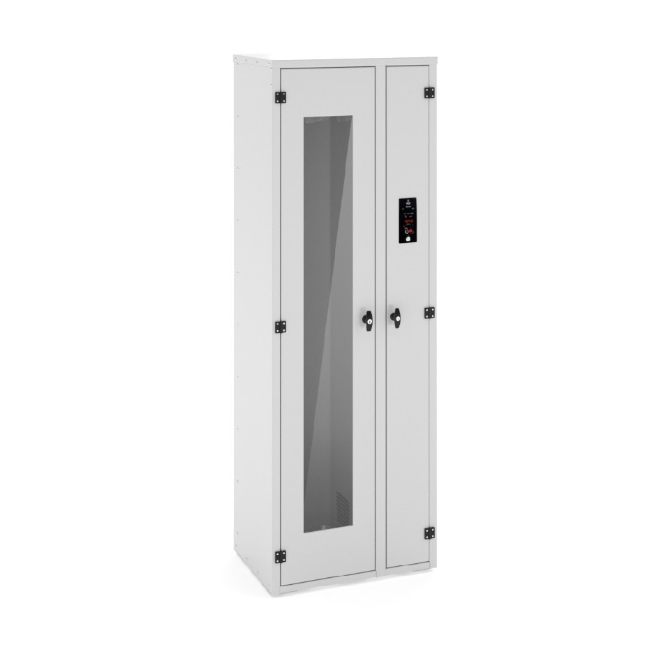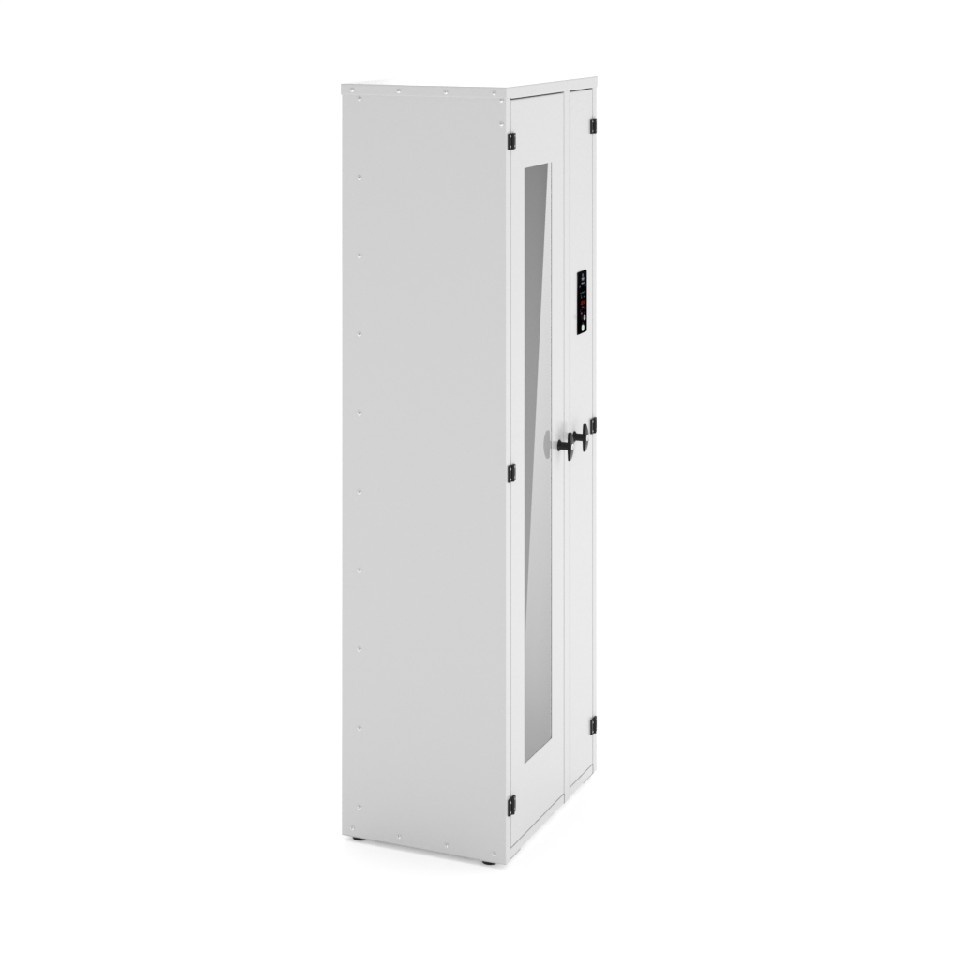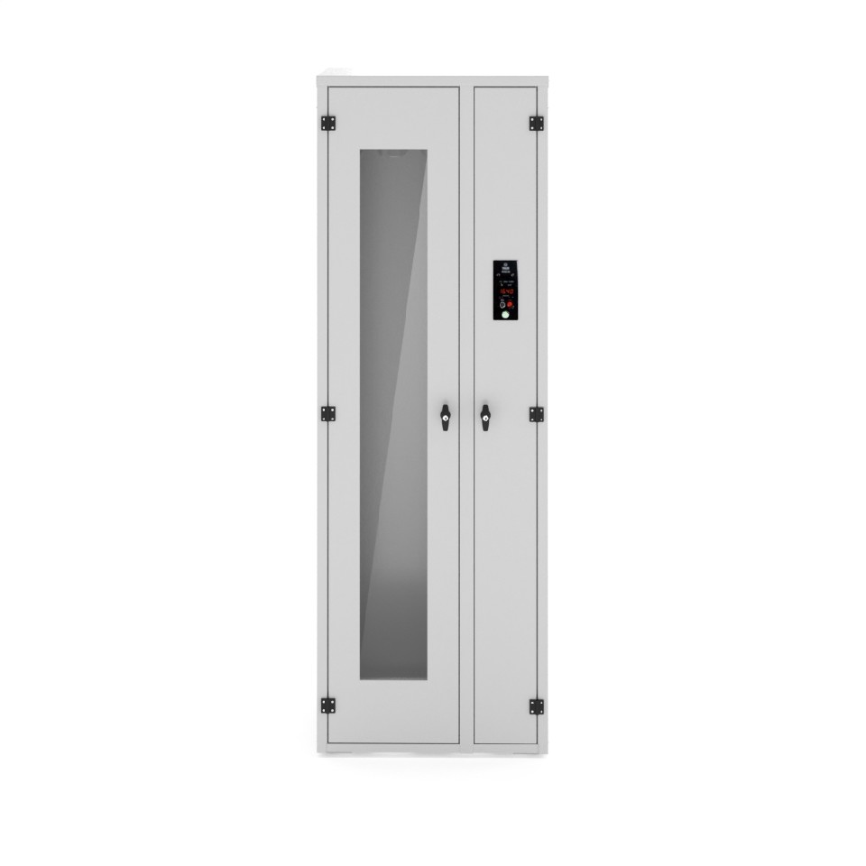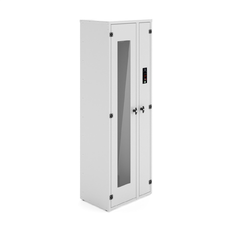 - Раздельная конструкция шкафа с отсеком хранения и техническим отсеком для подготовки воздуха снижает риск вторичной контаминации.