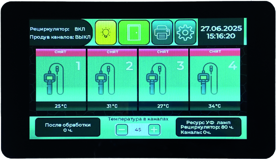 - Автоматическая индикация необходимости периодической дезинфекции.